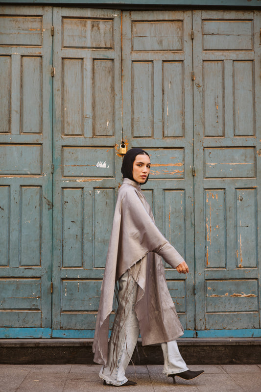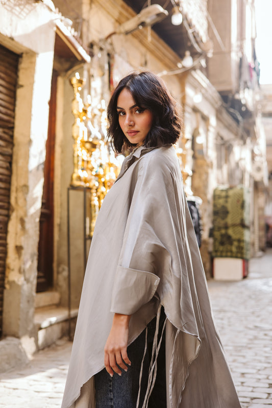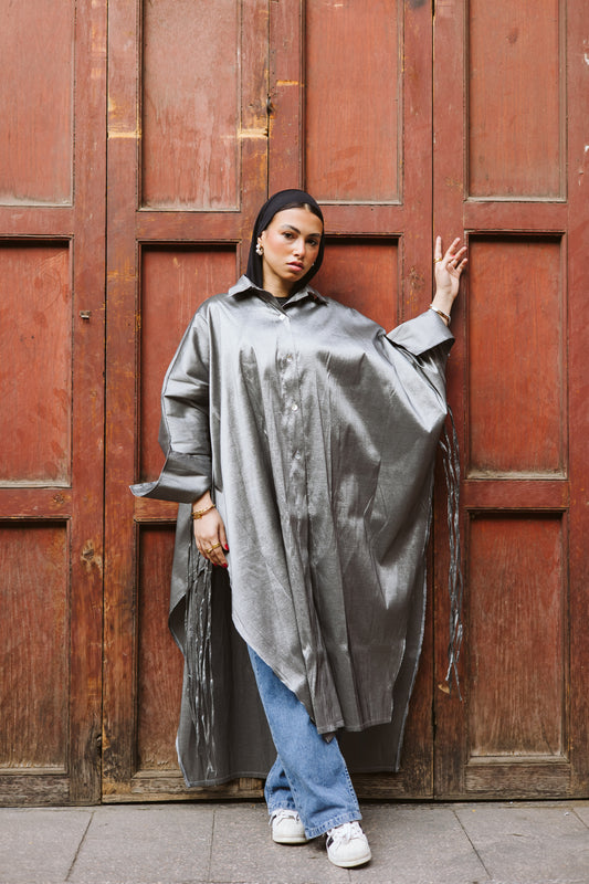 Long Fringes Kaftan in Grey