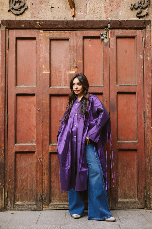 Long Fringes Kaftan In Purple