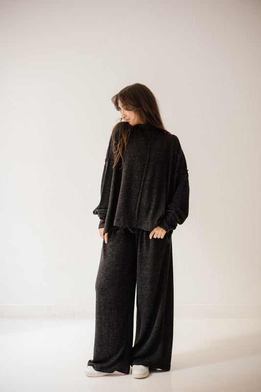 Long Kimono Wool Set In Black