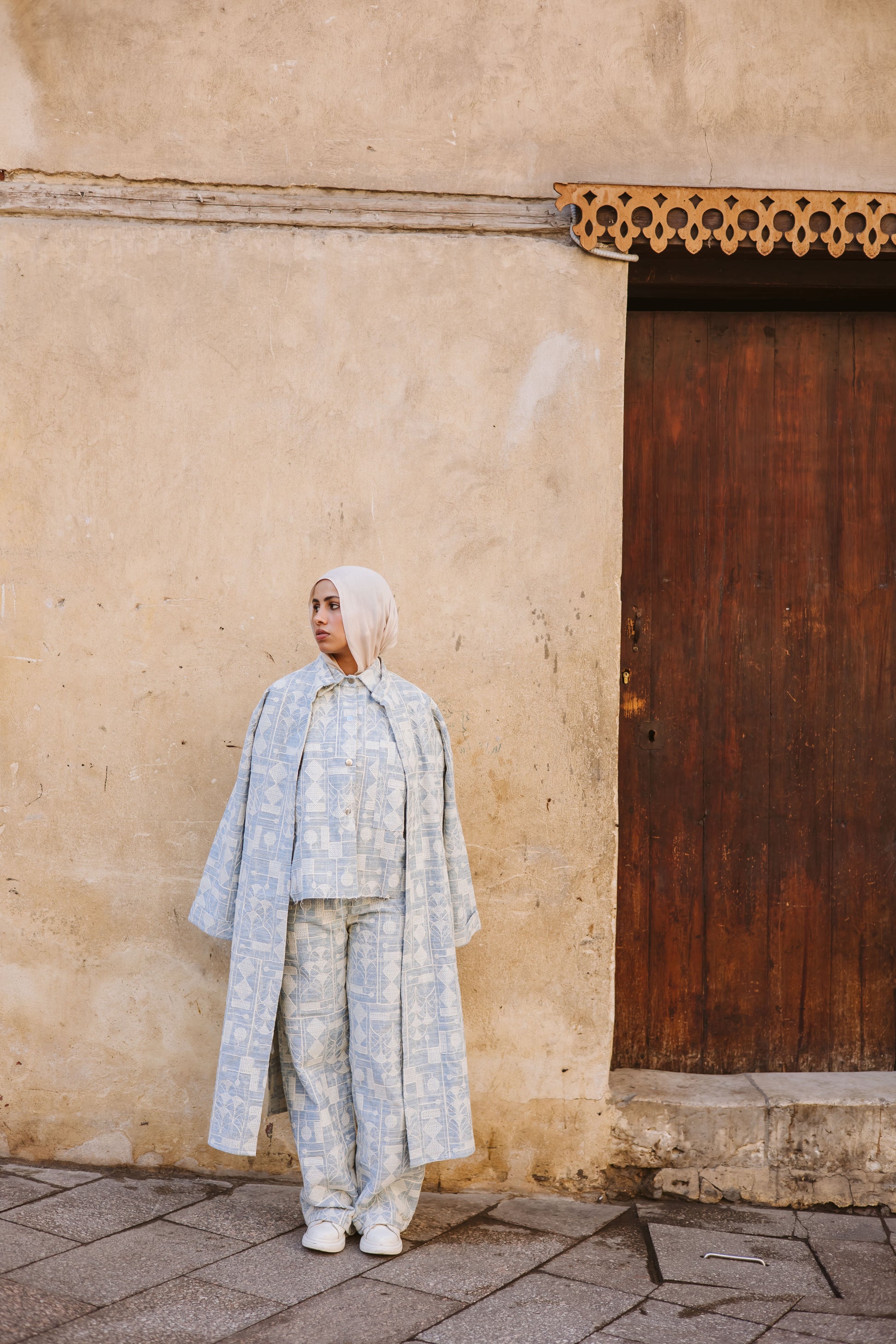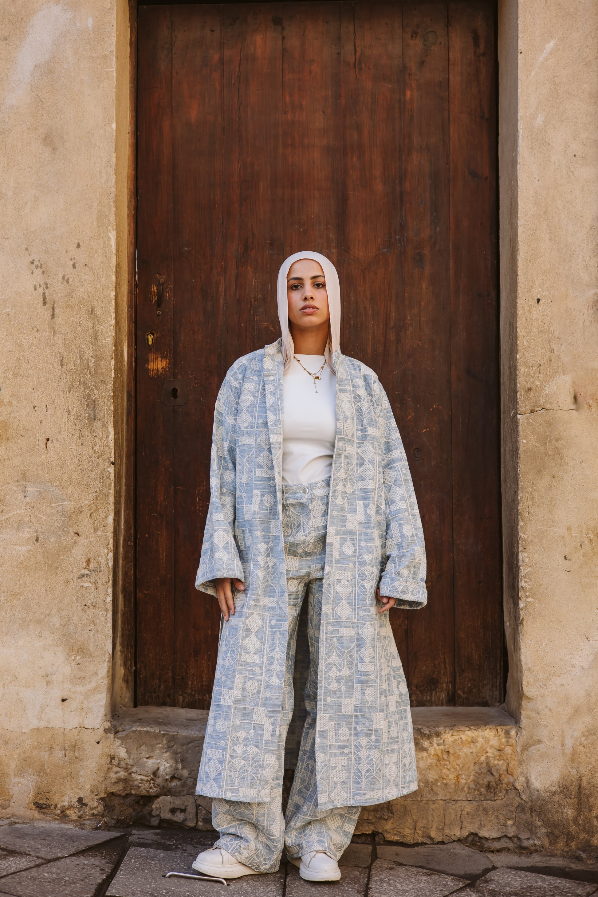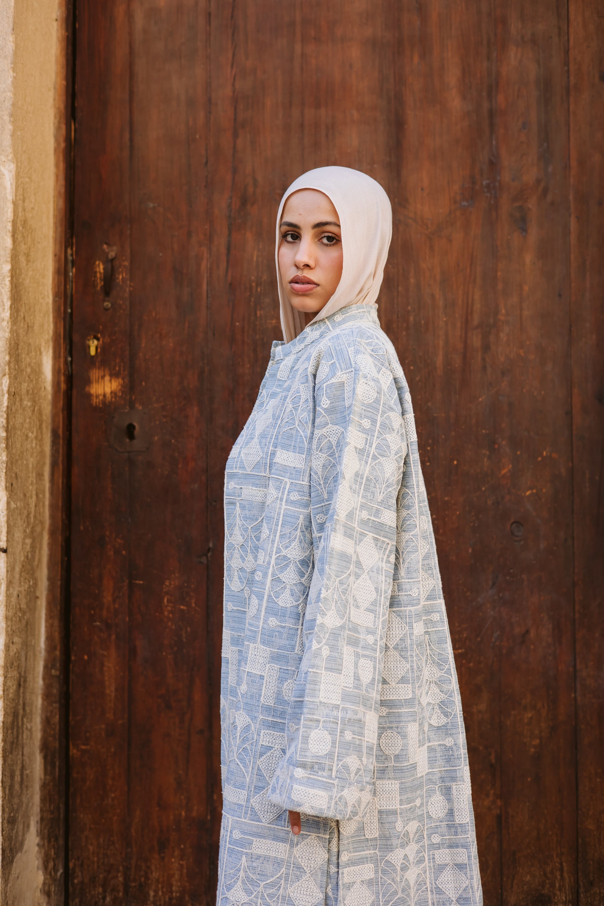 Long Embroidery Denim Jacket